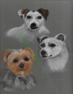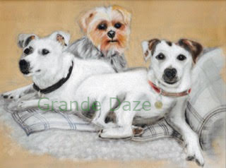 Bo Bo is the cheeky Yorkshire Terrier and Frodo is the serious chappy on the left of the painting, whilst Bert reclines on the right, leaning on the arm of the sofa.
